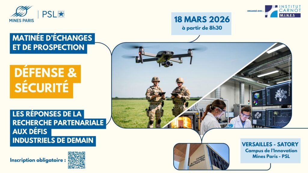 Mines Paris – PSL et le Carnot M.I.N.E.S ont le plaisir de vous inviter à une matinée d’échanges autour des opportunités de collaboration entre recherche publique et industriels de la défense et de la sécurité.