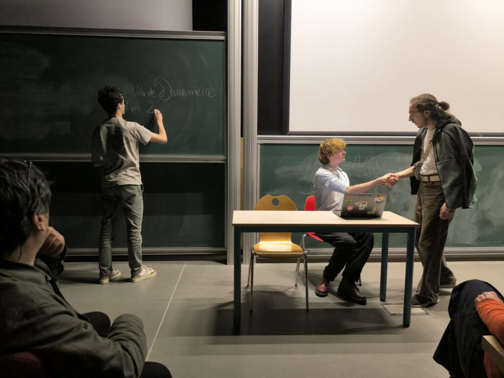 Pour cette édition, les élèves ont dû concevoir des scénarios plausibles et réalistes dans un monde où les grandes organisations politiques, économiques et sociales auraient disparu, laissant place à des unités locales plus ou moins autonomes. En recourant à la méthode de l’expérience de pensée, ils ont exploré des situations de crise, interrogeant les limites des modèles de sécurité et les capacités d’adaptation des acteurs face à l’inattendu.